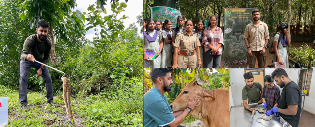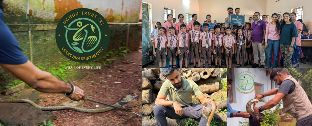 Today, Akshay is the founder of UCHUU TRUST (Udupi Snake in the City), a registered wildlife rescue and awareness organization that operates across the Udupi district. With a dedicated team of volunteers, UCHUU TRUST has carried out over 1500 snakes and wildlife rescues, involving both venomous and non-venomous species, including Spectacled Cobras, Russell’s Vipers, Indian Rock Pythons, Rat Snakes, and Kukri Snakes. Akshay has also participated in leopard rescue operations, elephant redirection efforts, and interventions involving orphaned or injured wildlife, including civet cats, baby squirrels, porcupines, monkeys, and birds.
