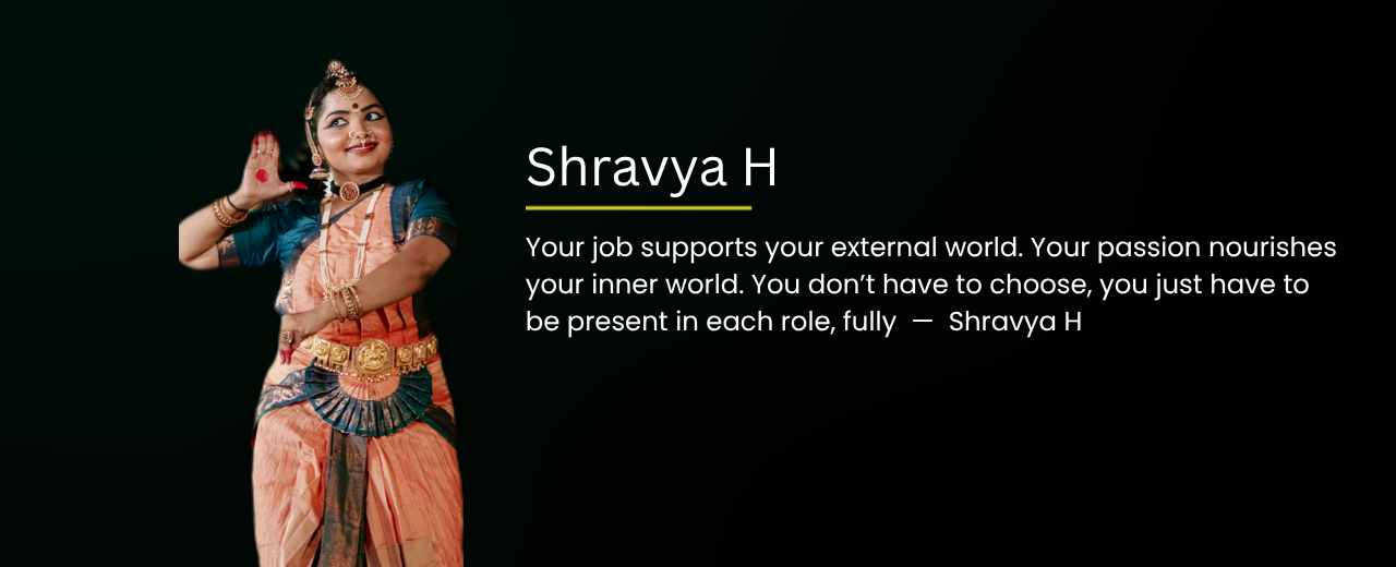 For Shravya, balance isn’t about perfect scheduling; it’s about being fully present in every role. Whether she’s coding during the day or choreographing in the evening, she gives her best to each moment. There have been days when rehearsals clashed with work meetings. Still, through open communication with her managers, adaptable routines, and intense inner motivation, she’s been able to carry both identities gracefully.