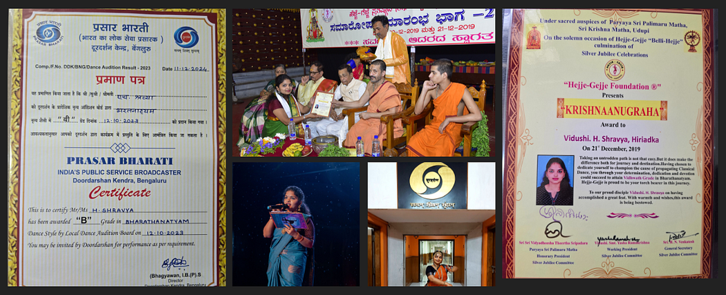 Shravya has graced over a thousand stages and received numerous notable honors along the way. She was selected as a B-grade artist by Doordarshan, earned a merit scholarship from the Karnataka Sangeetha Nritya Academy in 2018, and was presented the Krishnanugraha Award by Paryaya Sri Pejawara Swamiji in 2019. Yet, for Shravya, it’s never been about the accolade; it’s about staying connected to her purpose.